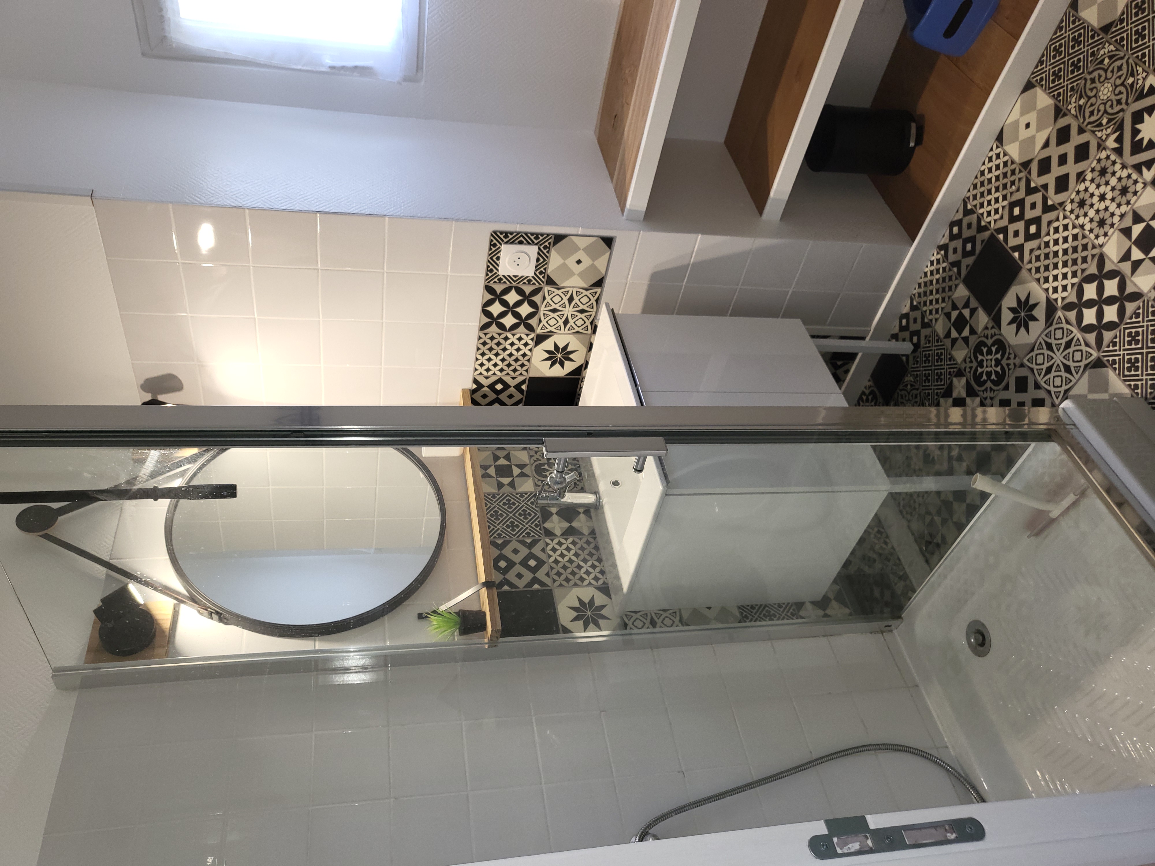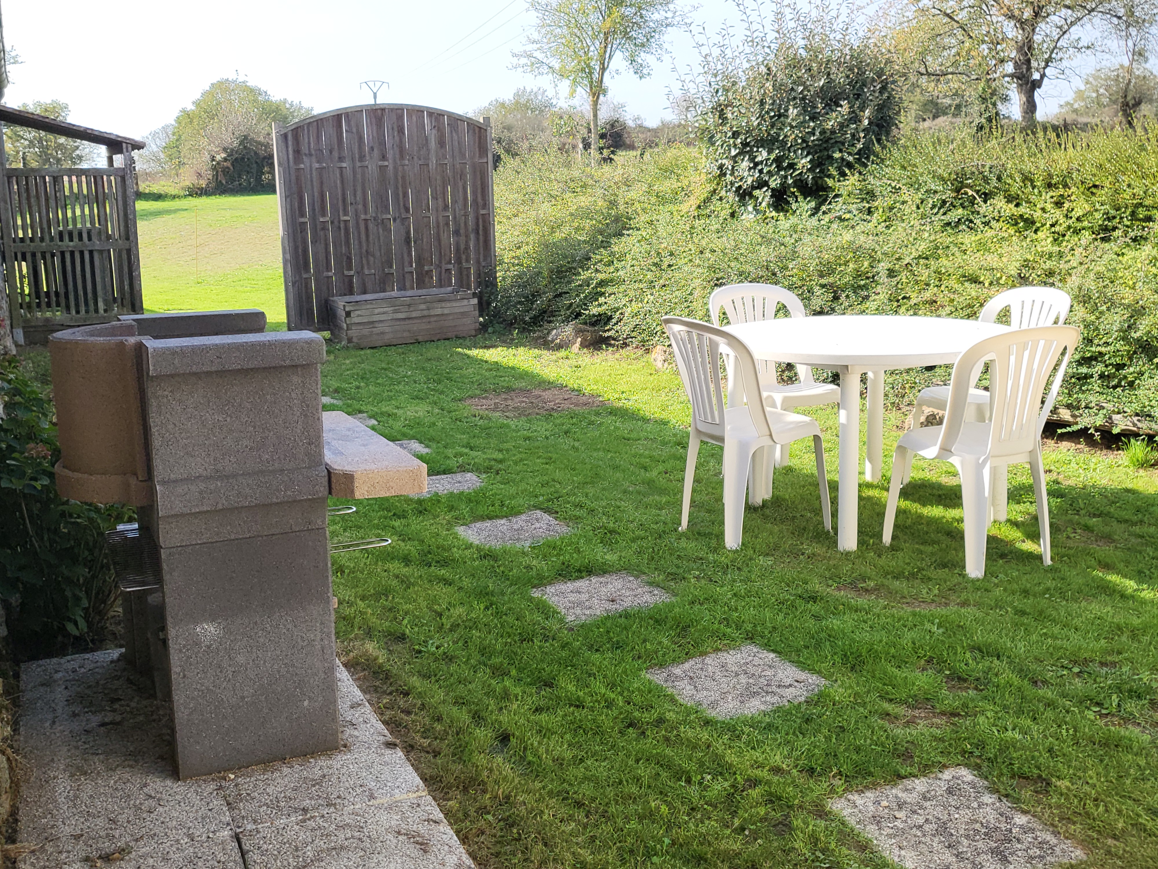 A l'étage : 3 lits 90 sur mezzanine de 20 m2, salon de jardin et barbecue dans un petit espace de verdure .