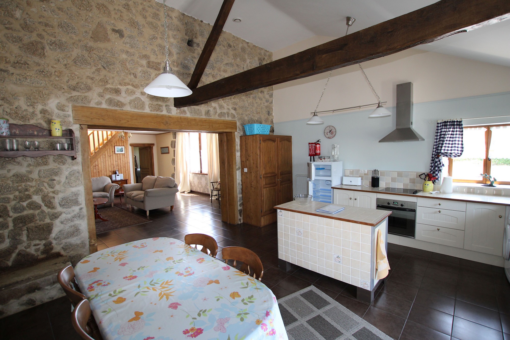 A 55mn du Puy du Fou, dans une belle campagne bocagère, l'ancienne grange a été restaurée avec goût et transformée en 3 gîtes mitoyens. Claudine et Dominique, les propriétaires, habitent la maison principale sur la propriété. Terrasse privée de 30m² avec barbecue. En commun : grand jardin fleuri et arboré, jeux pour enfants, balançoires, trampoline, toboggan, 8 vélos à disposition. Piscine commune chauffée (9mx6m, profondeur 1,25m, ouverte du 01/05 au 26 /09) et préau avec ping-pong. Le Gîte Glycine se compose, en rez-de-chaussée : cuisine aménagée (26m²) ouvrant sur grand salon (33m²-poêle à bois, Internet par Wifi), chambre 1 (26m²-2 lits 90, salle d'eau privative avec wc). A l'étage: chambre 2 (26m²-1 lit 140, salle de bain privative -baignoire et douche- avec wc). Lits faits et linge de toilette fourni. Chauffage électrique et poêle à bois (avec supplément).