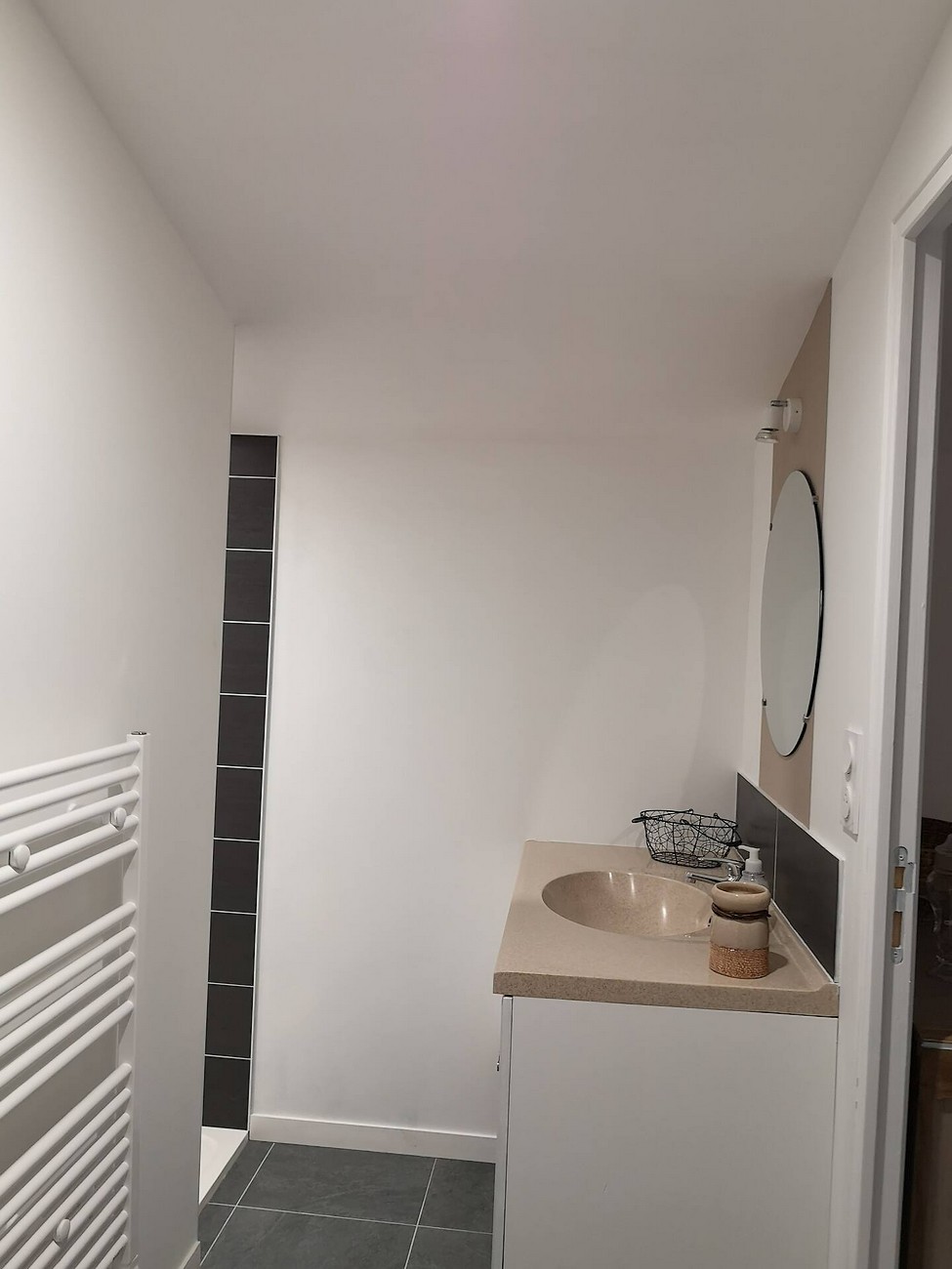 Au RDC, vous trouverez une cuisine équipée, un salon-salle à manger, une salle d'eau, WC et une chambre.