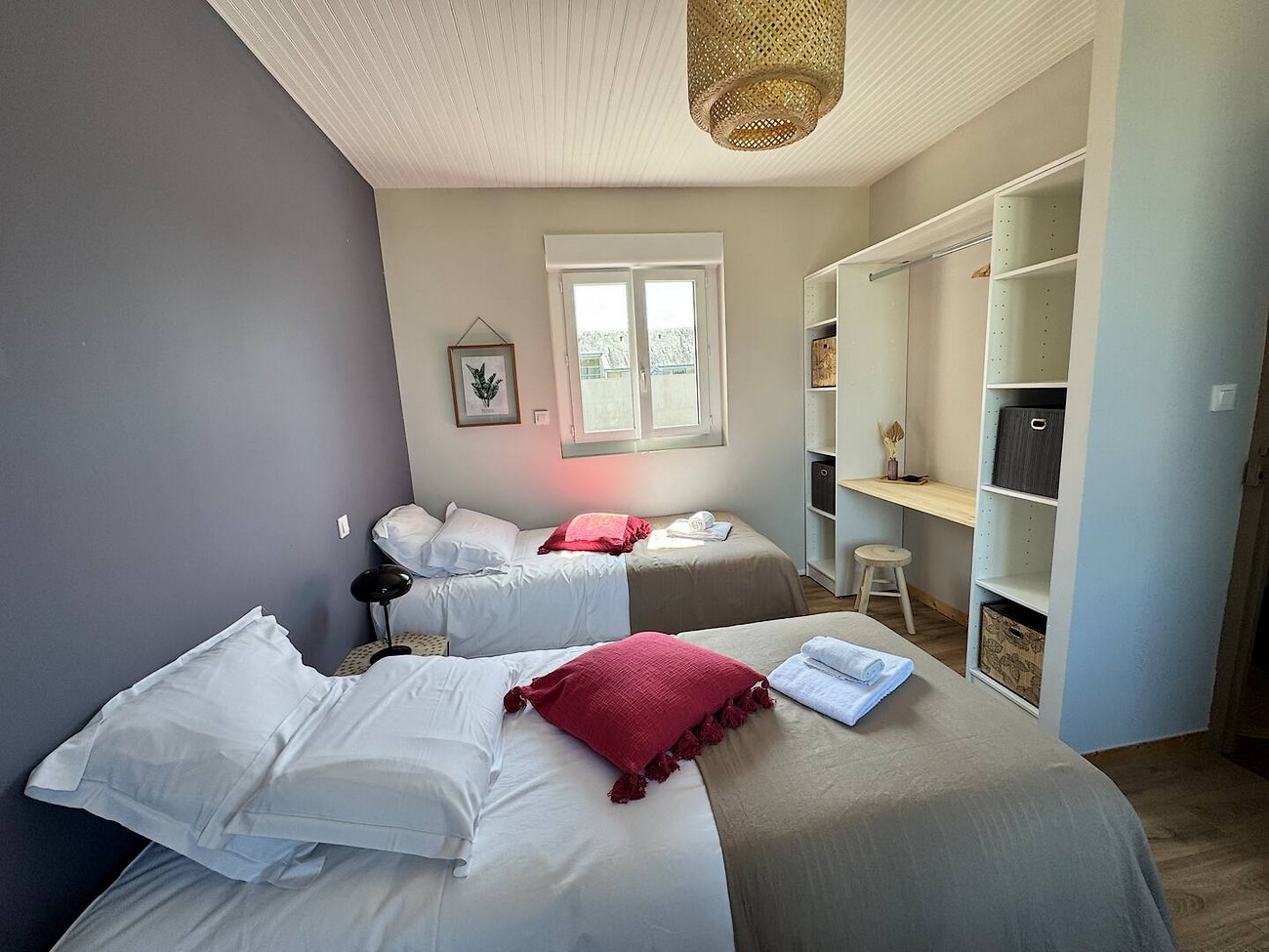 Après vos balades et découvertes, retrouvez le confort d’une maison chaleureuse et soignée : 3 chambres modulables jusqu’à 6 couchages, salon lumineux, cuisine équipée et petit jardin de ville pour se détendre.