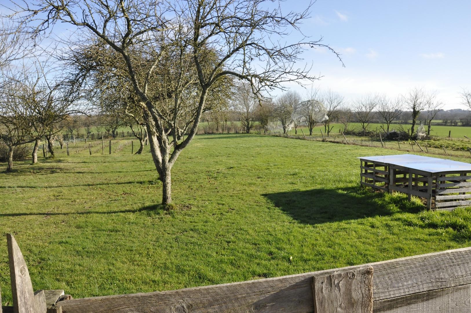 Côté sud-est grande terrasse 70m² et préau avec bar et réfrigérateur, salon de jardin. Environnement calme avec belle vue sur la campagne arborée. Ferme à proximité.