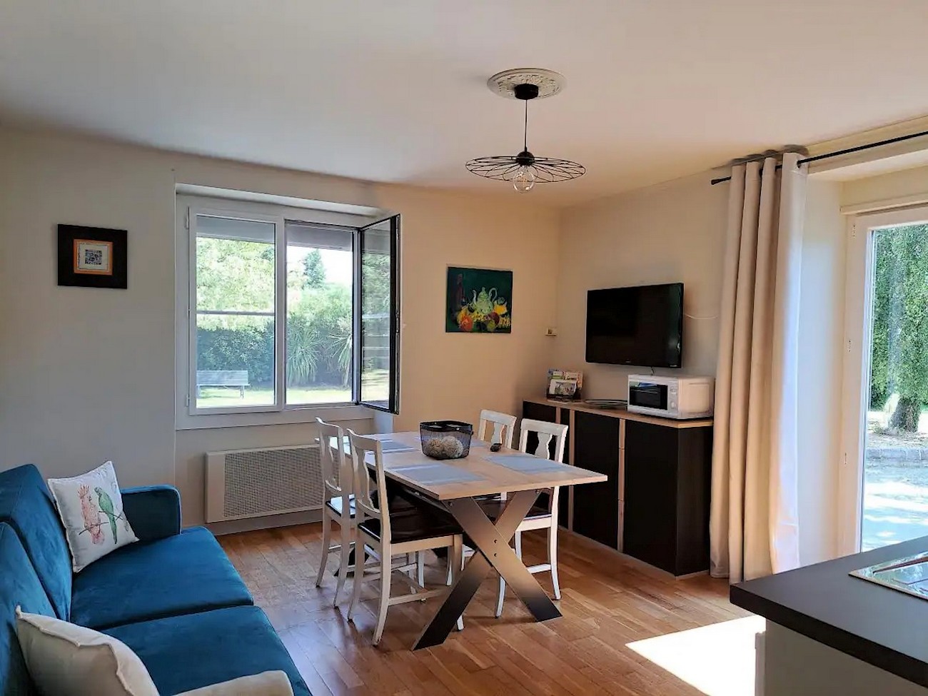 A 20mn du Puy du Fou, longère de plain-pied, à la campagne avec jardin arboré. Pièce de vie fonctionnelle, vue sur la campagne, cuisine équipée (TV, internet), Chambre1 (2 lits 90), Chambre2 (lit 160 + lit d'appoint), salle d'eau, wc.