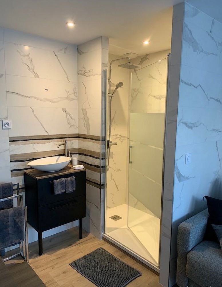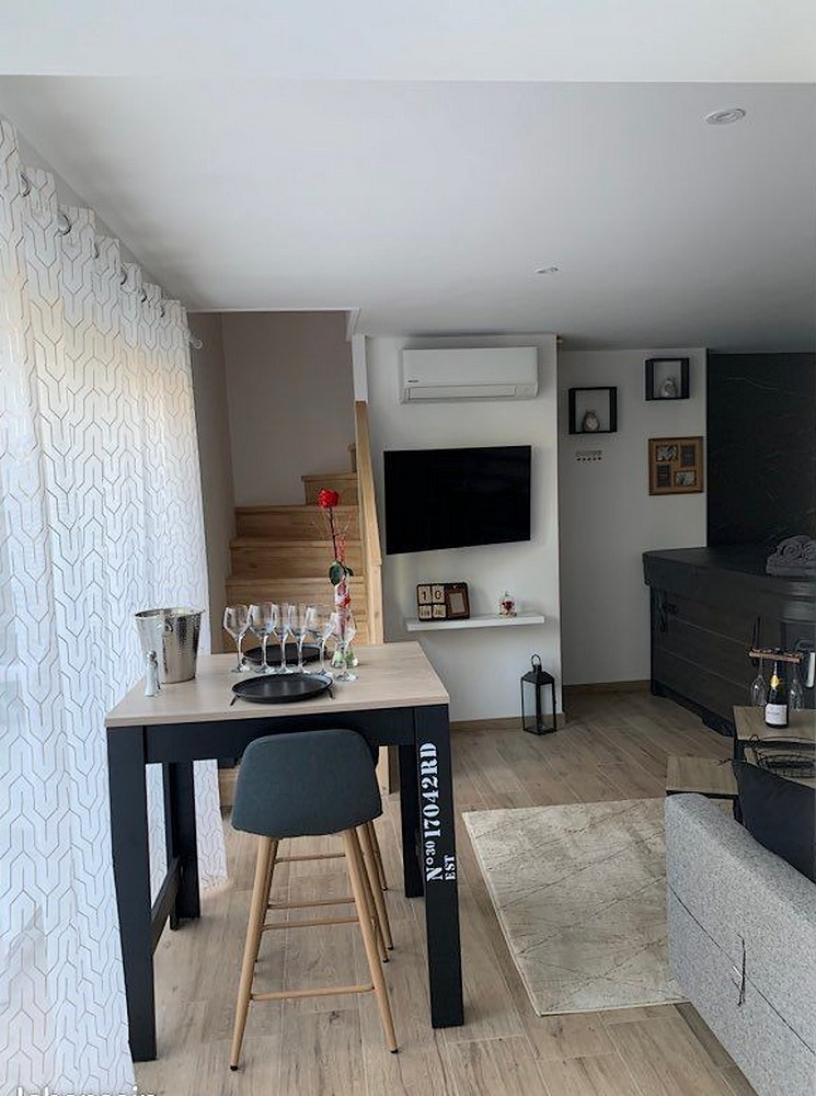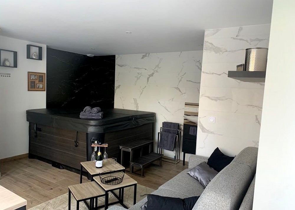 Entrée indépendante grâce à une boite à clefs , place de parking et borne de recharge pour voiture électrique située à 10 mètres de l’entrée. Une terrasse de 27 m² sans vis à vis avec salon de jardin. Cuisine équipée d’un lave-vaisselle, plaque, hotte, frigo, micro-ondes, grille pain, cave à vins et cafetière. Ensuite un magnifique spa de 5 vraies places en accès libre et illimité avec une couverture pour avoir une eau toujours à la bonne température. Un canapé qui fait office de lit au rez-de-chaussée si vous êtes 4 (dimension 140x190), salle de bain avec douche, vasque, porte serviettes.