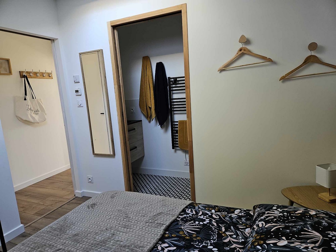Le logement comprend une chambre avec salle de douche, wc indépendant et une pièce de vie avec cuisine aménagée. Le linge de maison est fourni. Commerces à 5 min.