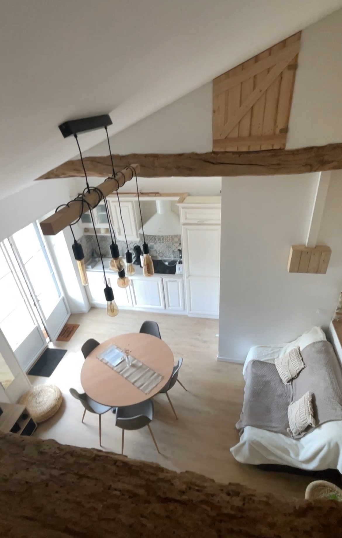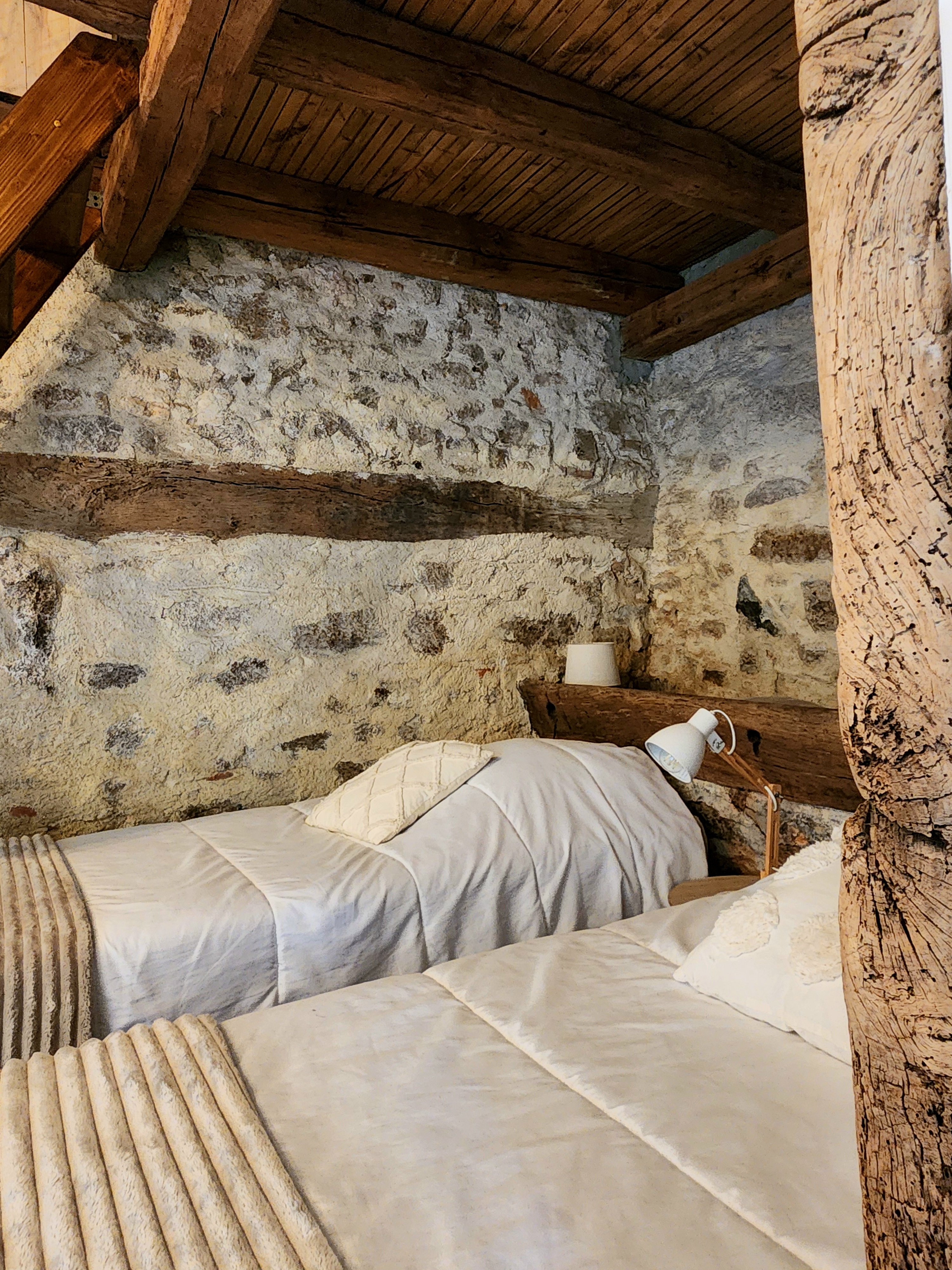 Profitez du cadre charmant de ce logement atypique en pleine nature au cœur de notre exploitation agricole. Nous avons rénové cette ancienne écurie en studio de 30 m2 avec une belle pièce de vie avec tout l’équipement nécessaire pour votre séjour, 2 couchages 1 personne au rez de chaussée, 1 canapé ainsi qu’une chauffeuse pour un enfant jusqu’à 10 ans environ. Vous bénéficierez également de 2 couchages 1 personne en mezzanine (accès par une échelle de meunier - idéale pour des enfants mais possible pour des adultes en se penchant un peu 😉).