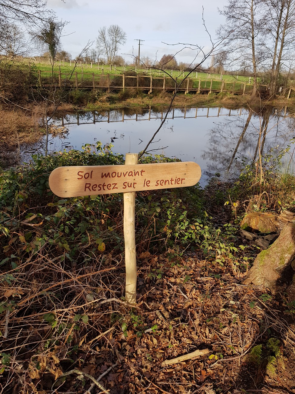 Ce sentier de 2 km sur un site préservé, est au coeur d'un vaste paysage bocager, berceau de sources où se mêlent prairies, mares, haies paysagères et petits cours d'eau. Site labellisé "Espace Naturel sensible".